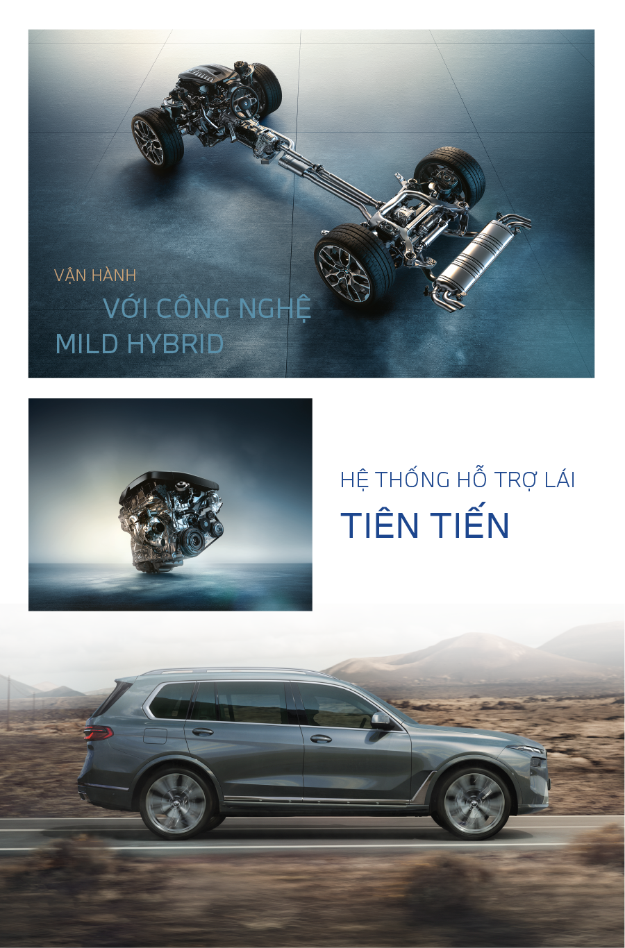 BMW X7 mới tự hào khi được trang bị động cơ 6 xi-lanh thẳng hàng thế hệ mới nhất của BMW với nhiều thay đổi tích cực trong quá trình đốt trong, trao đổi khí, hệ thống phun xăng và cải thiện hiệu suất của xe. Công suất động cơ mới đạt 381 mã lực, mô-men xoắn cực đại có thể đạt ngưỡng 540 Nm nhờ đầu vào của hệ thống Mild Hybrid mới.