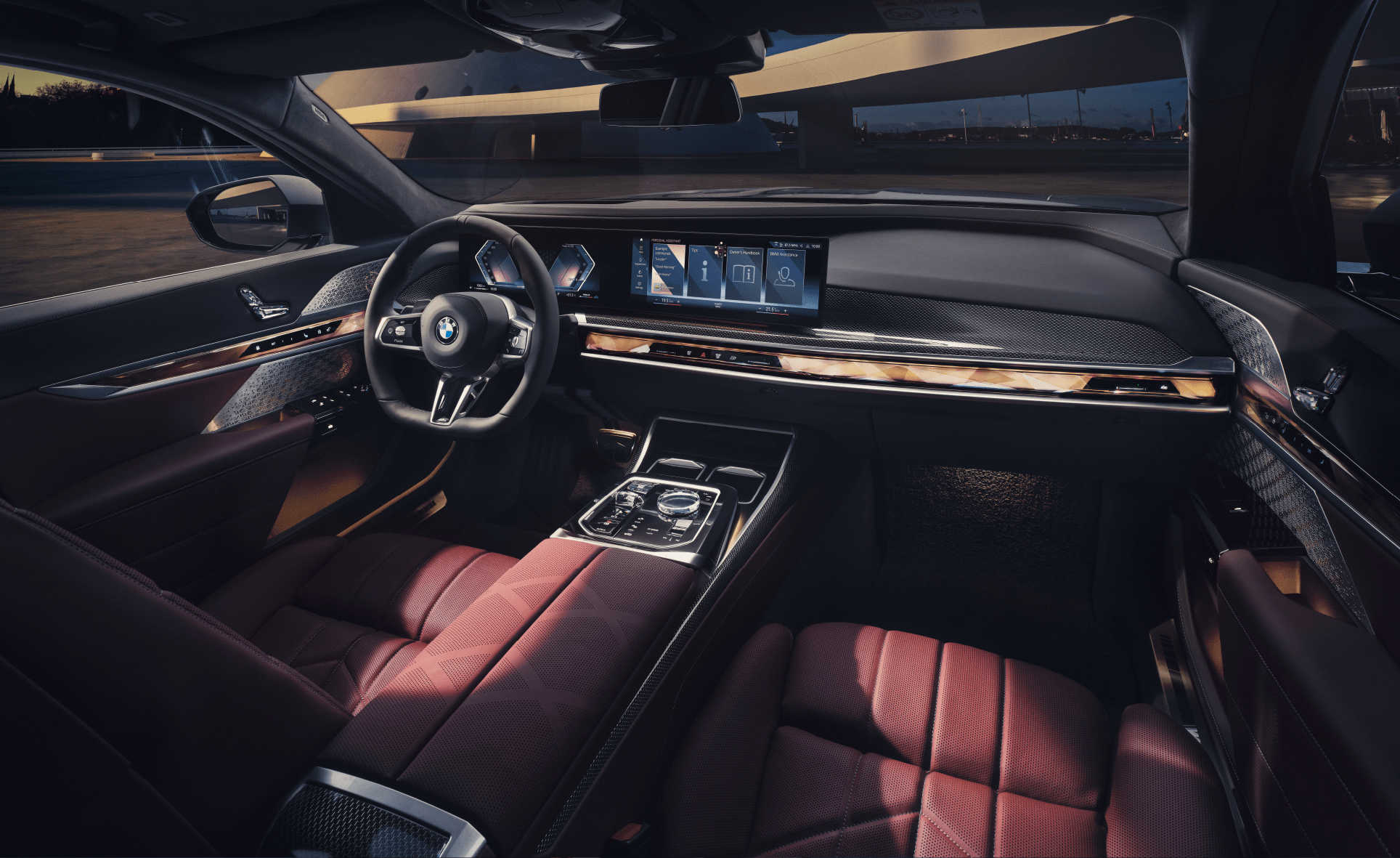 Tận hưởng và thư giãn là trải nghiệm không thể thiếu khi nhắc đến BMW 7 Series. Hãy hoà mình vào một không gian sang trọng mang đẳng cấp 5 sao với nội thất được bọc da cao cấp cùng các trang bị công nghệ hiện đại bậc nhất như màn hình cong Curved Display, thanh BMW Interaction Bar, ghế massage và trải nghiệm ánh sáng độc đáo từ của sổ trời Panorama Sky Lounge.
